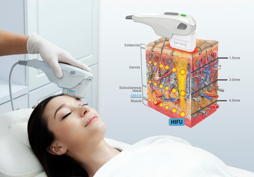 HIFU arbetar djupt under ytan och stimulerar tillväxten av kollagen utan att skada det yttre hudlagret.